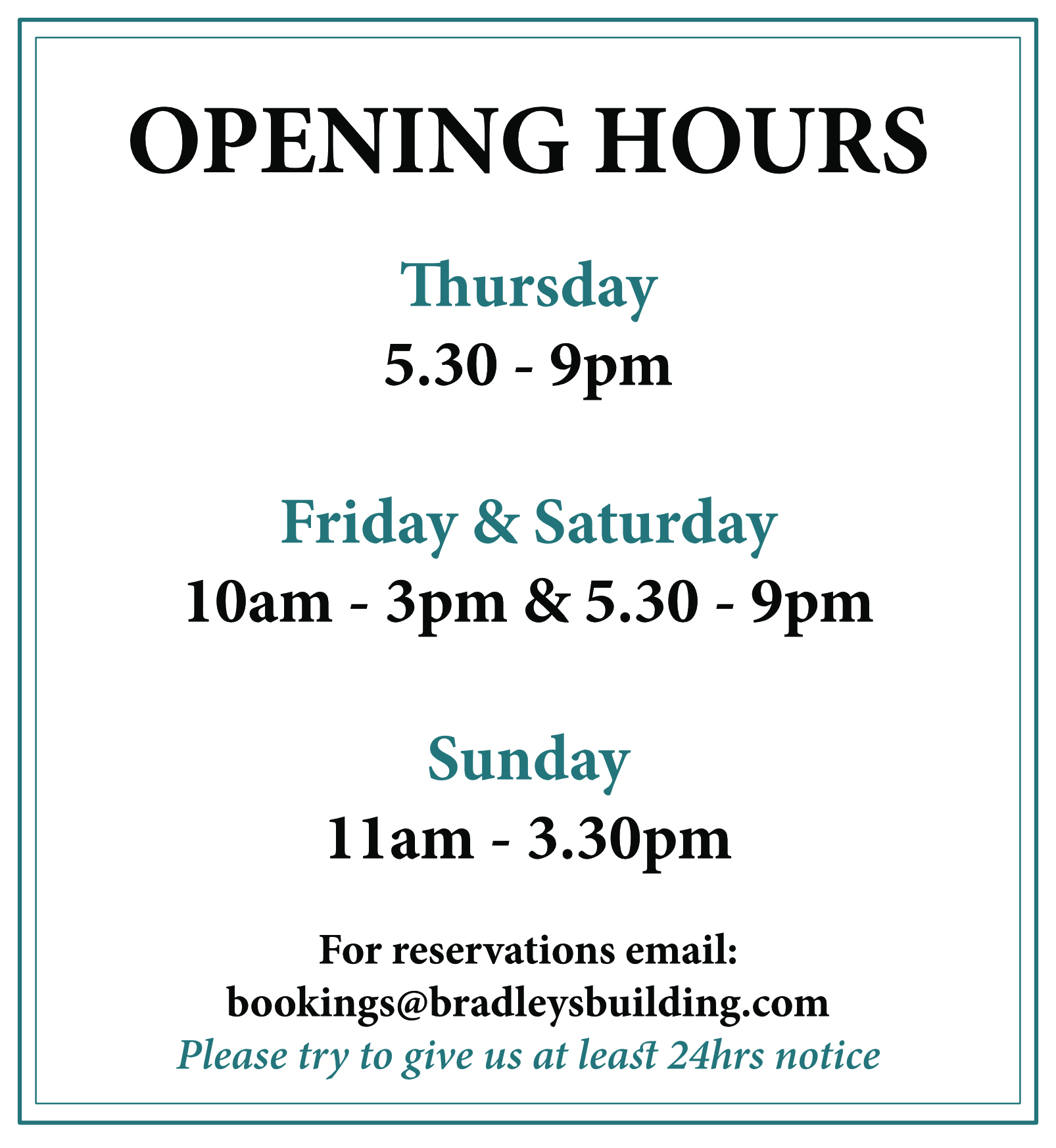 To book a table check out our opening times and email us HERE